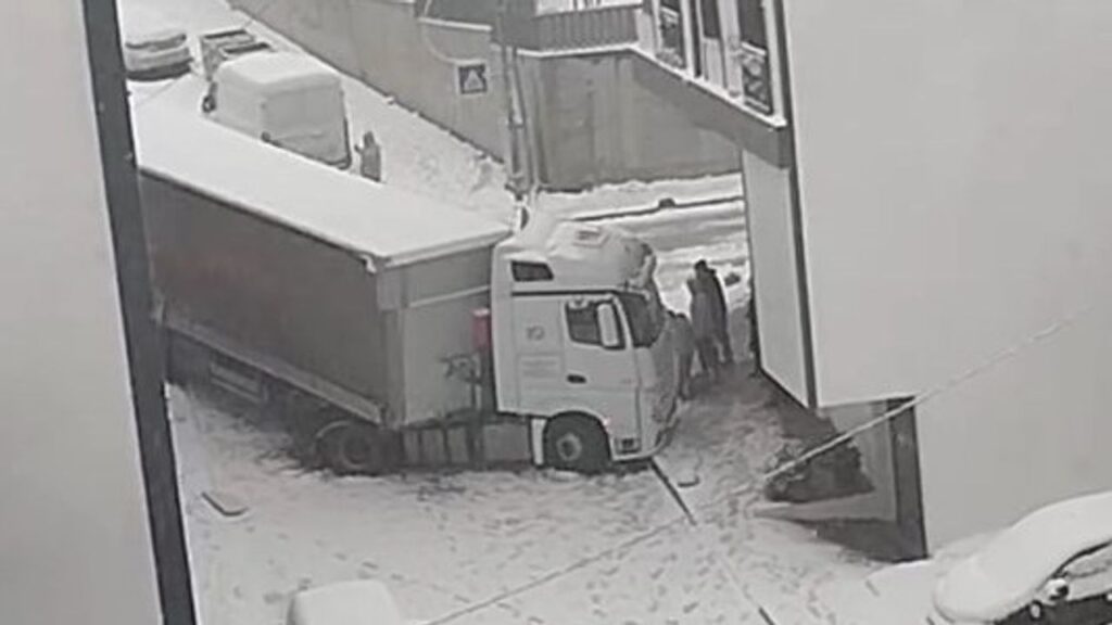 İstanbul’da etkisini artıran kar yağışı, Küçükçekmece’de ulaşımı felç etti. İkitelli Mahallesi’nde yoğun yağış nedeniyle kayganlaşan yolda kontrolden çıkan bir TIR,